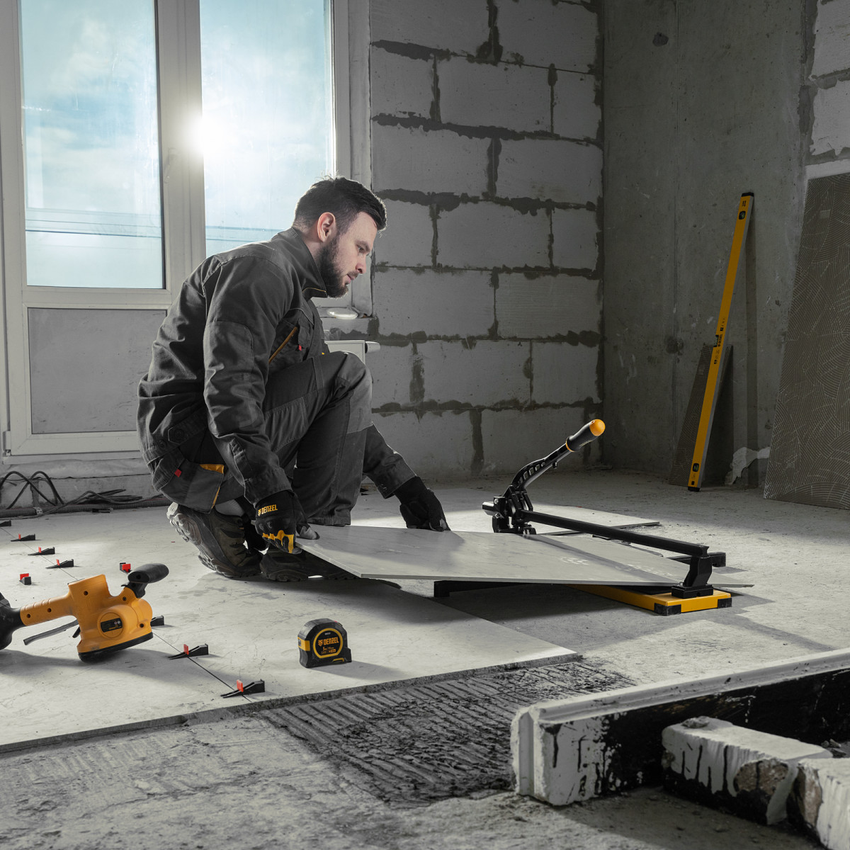 - Удобная работа — благодаря противоскользящим накладкам плиткорез не смещается даже на гладких поверхностях.