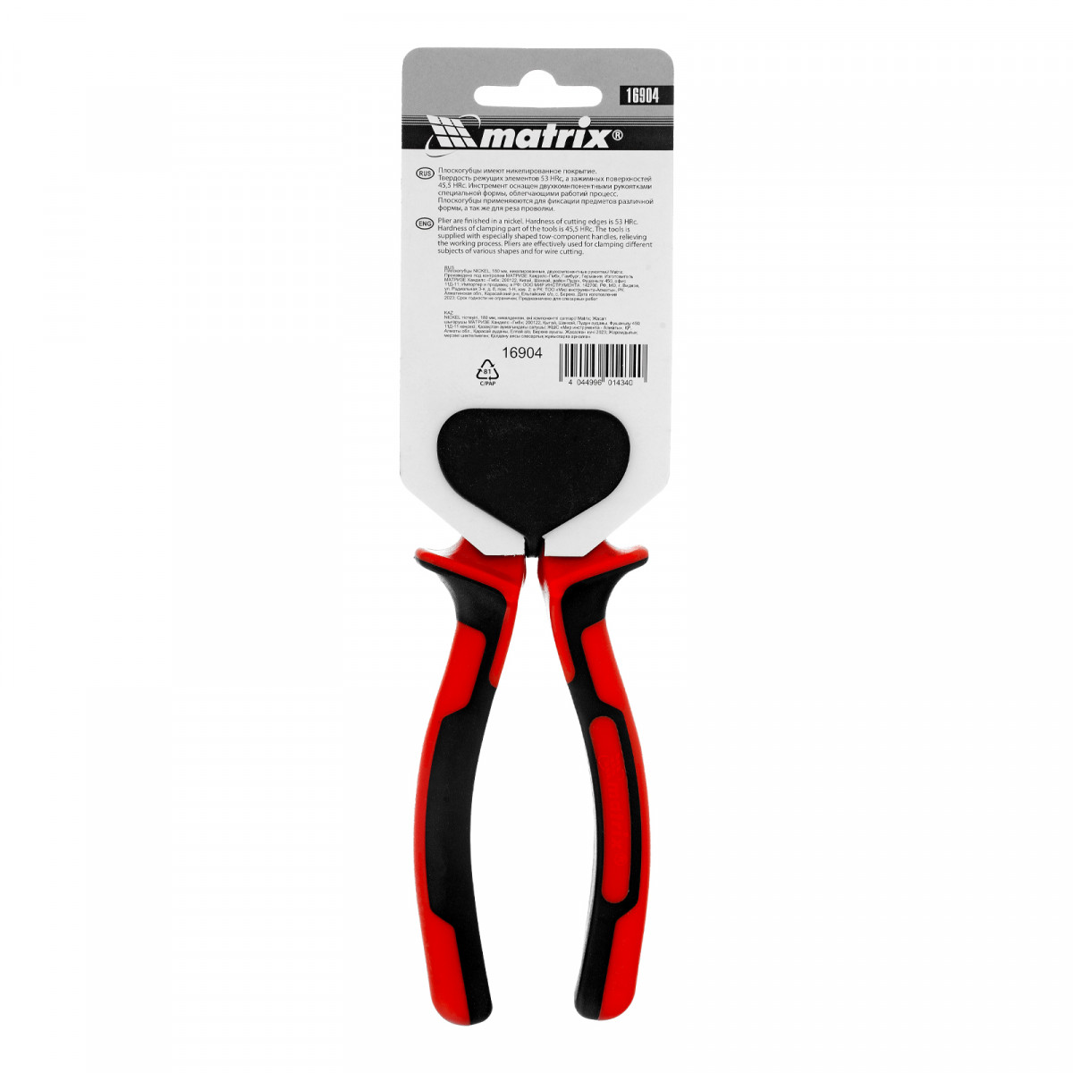 Плоскогубцы Nickel, 180 мм, никелированные, двухкомпонентные рукоятки Matrix