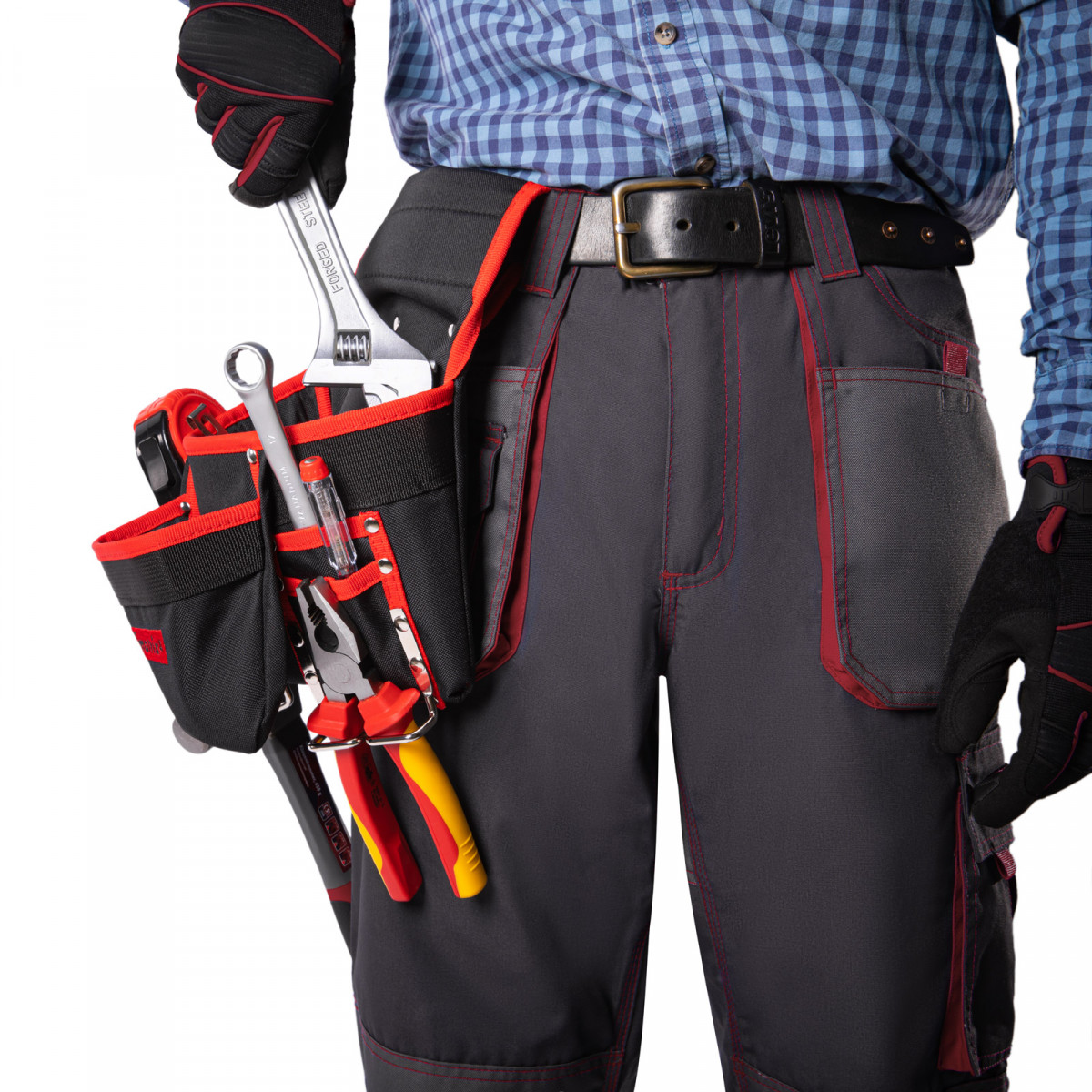 • Функциональность — в 8 карманах разного размера можно разместить отвертки, шарнирно-губцевый и другой инструмент, а также детали и крепеж.
