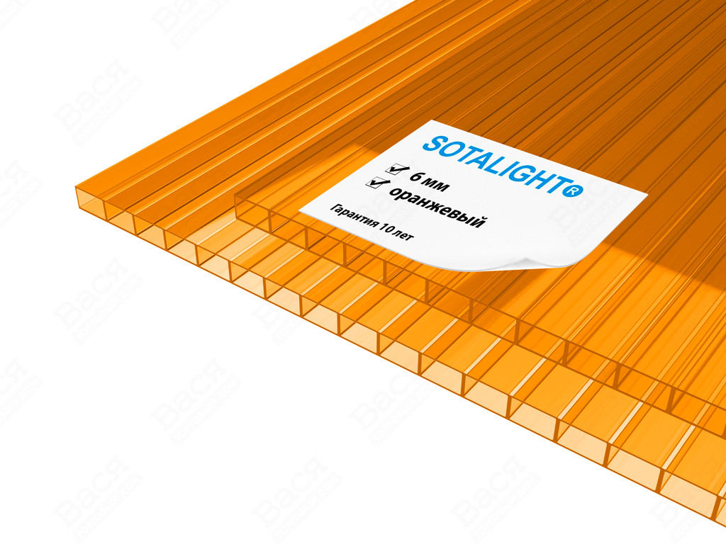 Поликарбонат сотовый SOTALIGHT 6 мм оранжевый 2,1*6 м