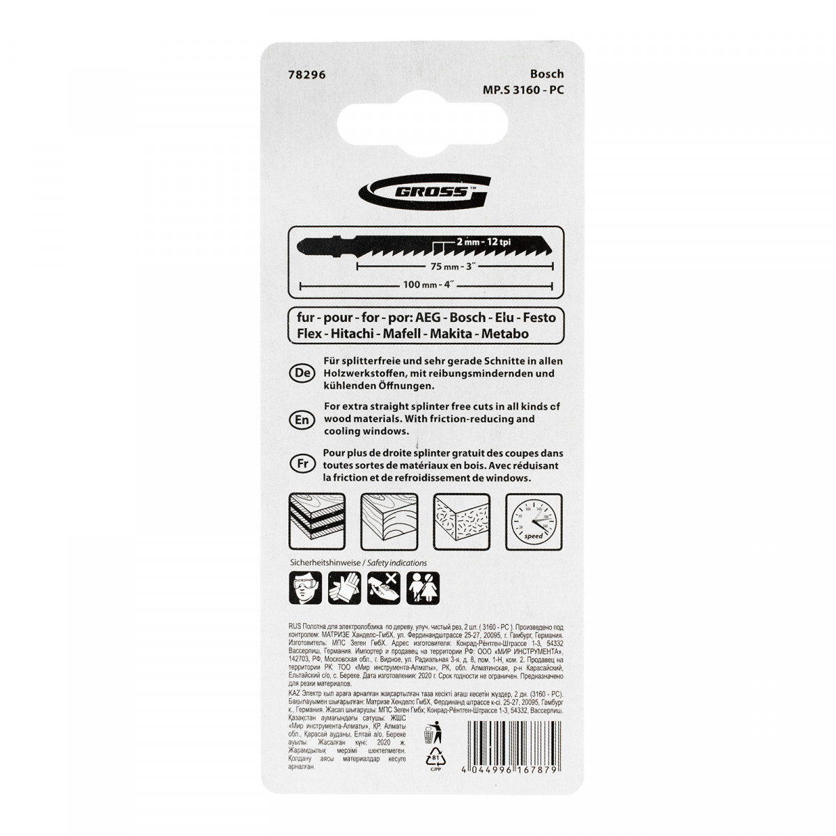 Полотна для электролобзика по дереву, улучшенный чистый рез, 2 шт. ( 3160 - PC ) Gross