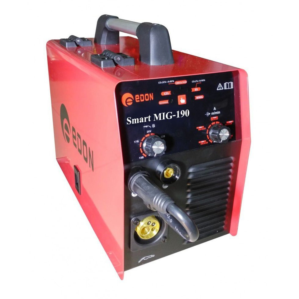 Сварочный полуавтомат инверторного типа EDON Smart MIG-190 для полуавтоматической сварки в среде инертных газов и дуговой сварки штучным электродом.