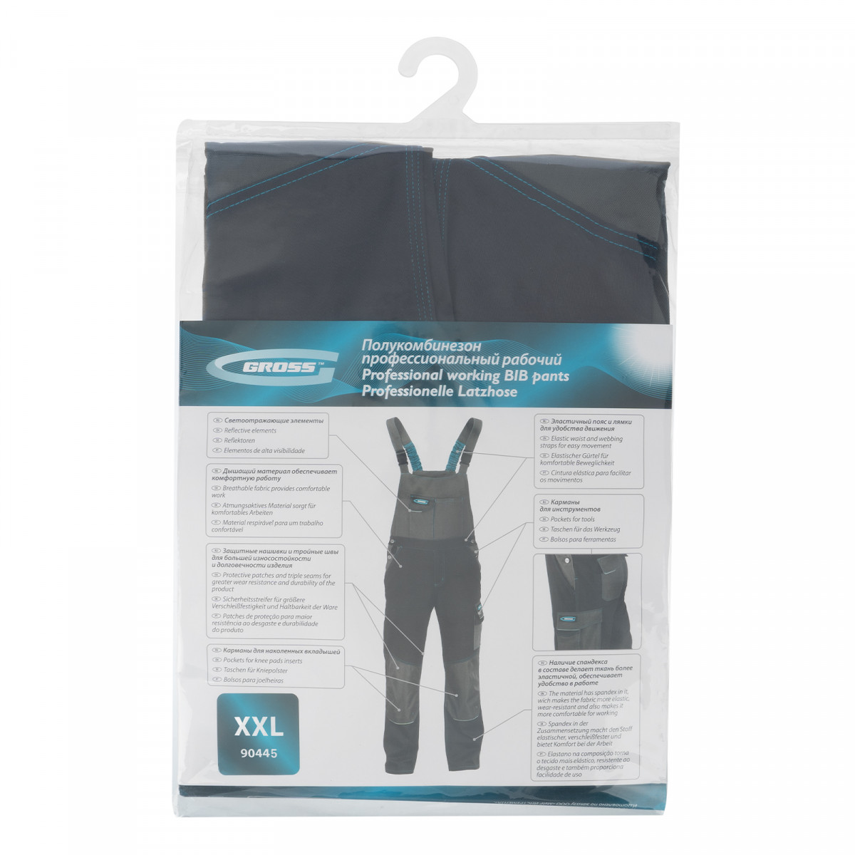 Полукомбинезон профессиональный рабочий, 97% хлопок 3% спандекс, XXL Gross