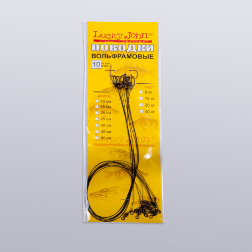 Поводок вольфрам оснащенный вертл. и застеж. 15кг 15-20-25см