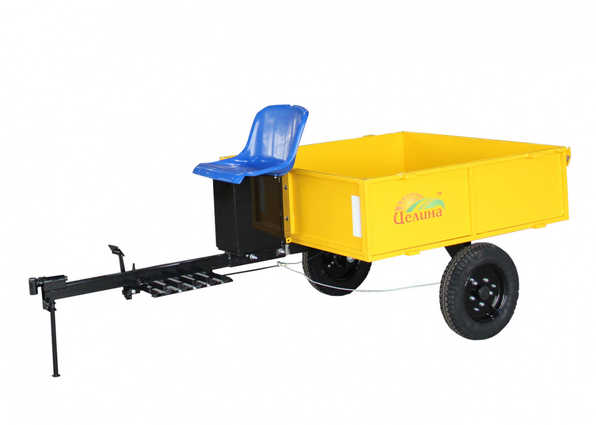 "Предназначен для перевозки сельскохозяйственных, строительных материалов и прочих грузов. Тяговые средства - мотоблоки типа: ""Целина"", ""Каскад"", ""Нева"", ""Кадви"" и др.