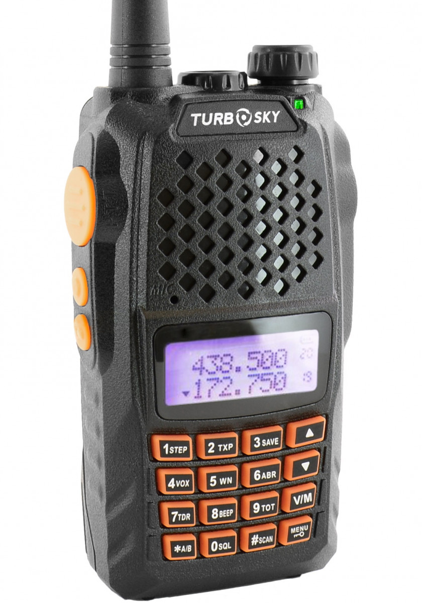 Портативная рация Turbosky T2 - универсальная радиостанция для работы в двух частотных диапазонах VHF и UHF с возможностью одновременного приёма сигнала с разных диапазонов частот. Набор функций любительской рации TurboSky T2 больше напоминает перечень возможностей профессиональной рации, с той разницей, что использование данной модели не требует лицензии.