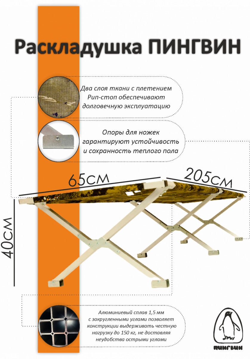 Раскладушка ПИНГВИН складная в чехле 205/65