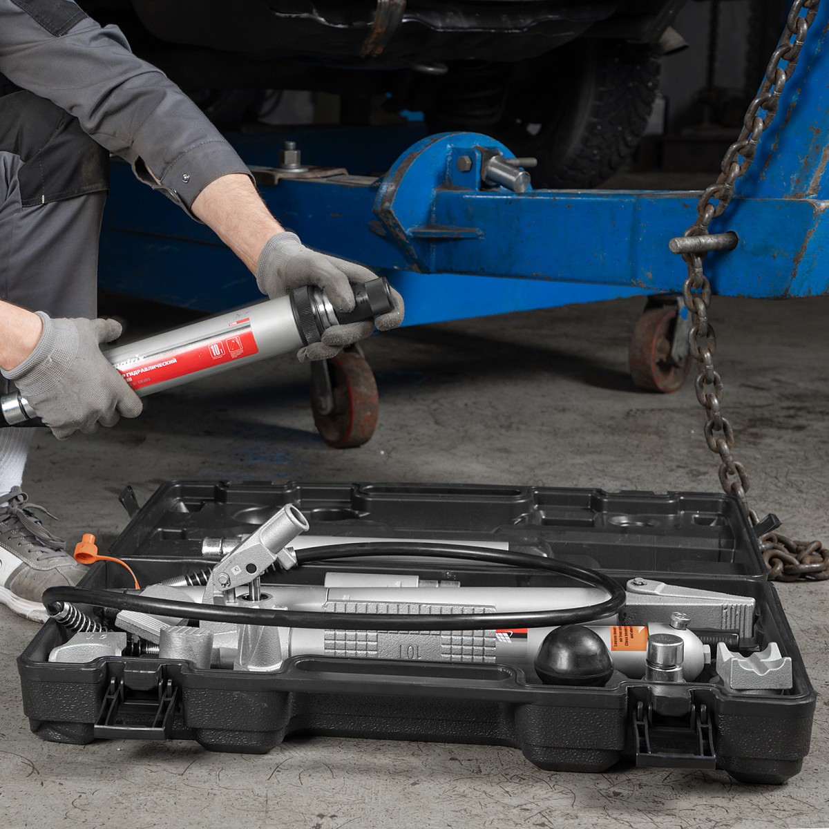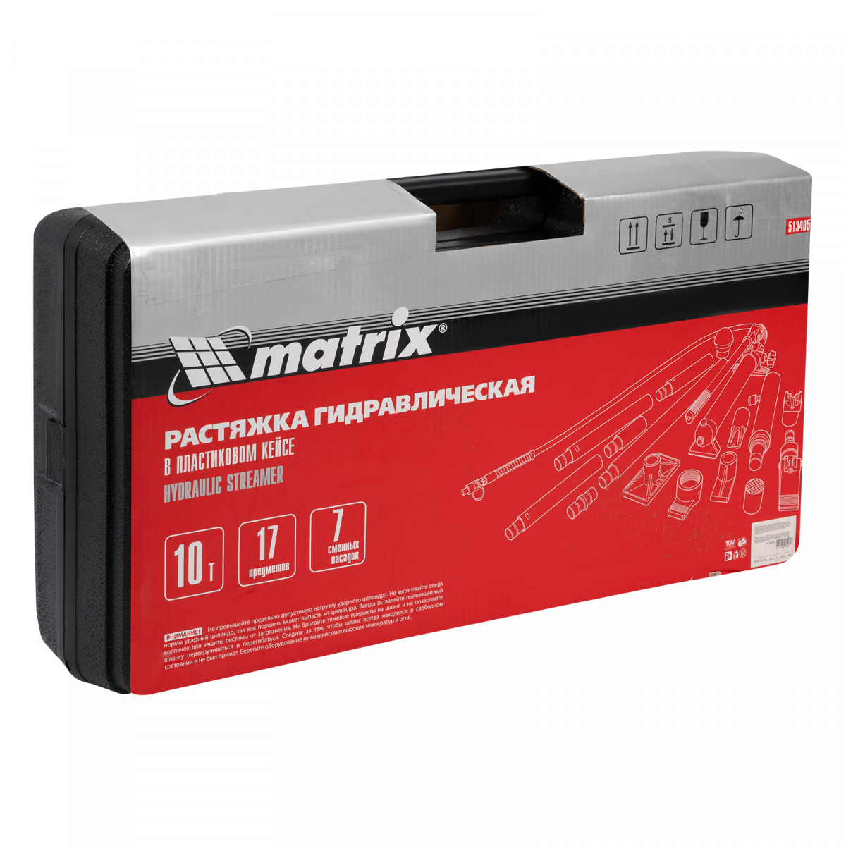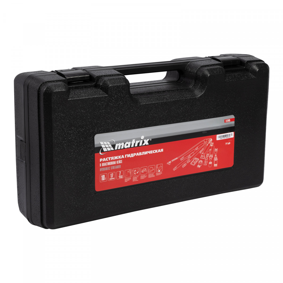 Растяжка гидравлическая, 10 т, набор из 17 предметов, 7 сменных насадок, в пластиковом кейсе Matrix