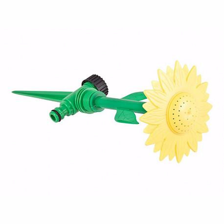 Разбрызгиватель в форме цветка на пике, изготовлен из ударопрочного пластика. Цвет желтый. Имеет два выхода для подсоединения к шлангу либо к дополнительному разбрызгивателю.