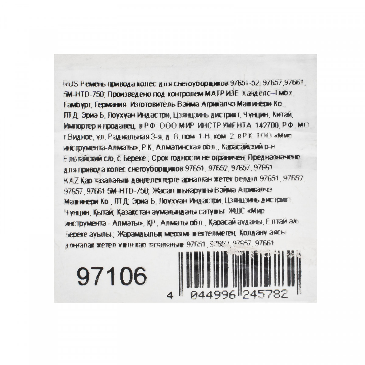 Ремень привода колес для снегоуборщиков 97651-52, 97657,97661, 5M-HTD-750