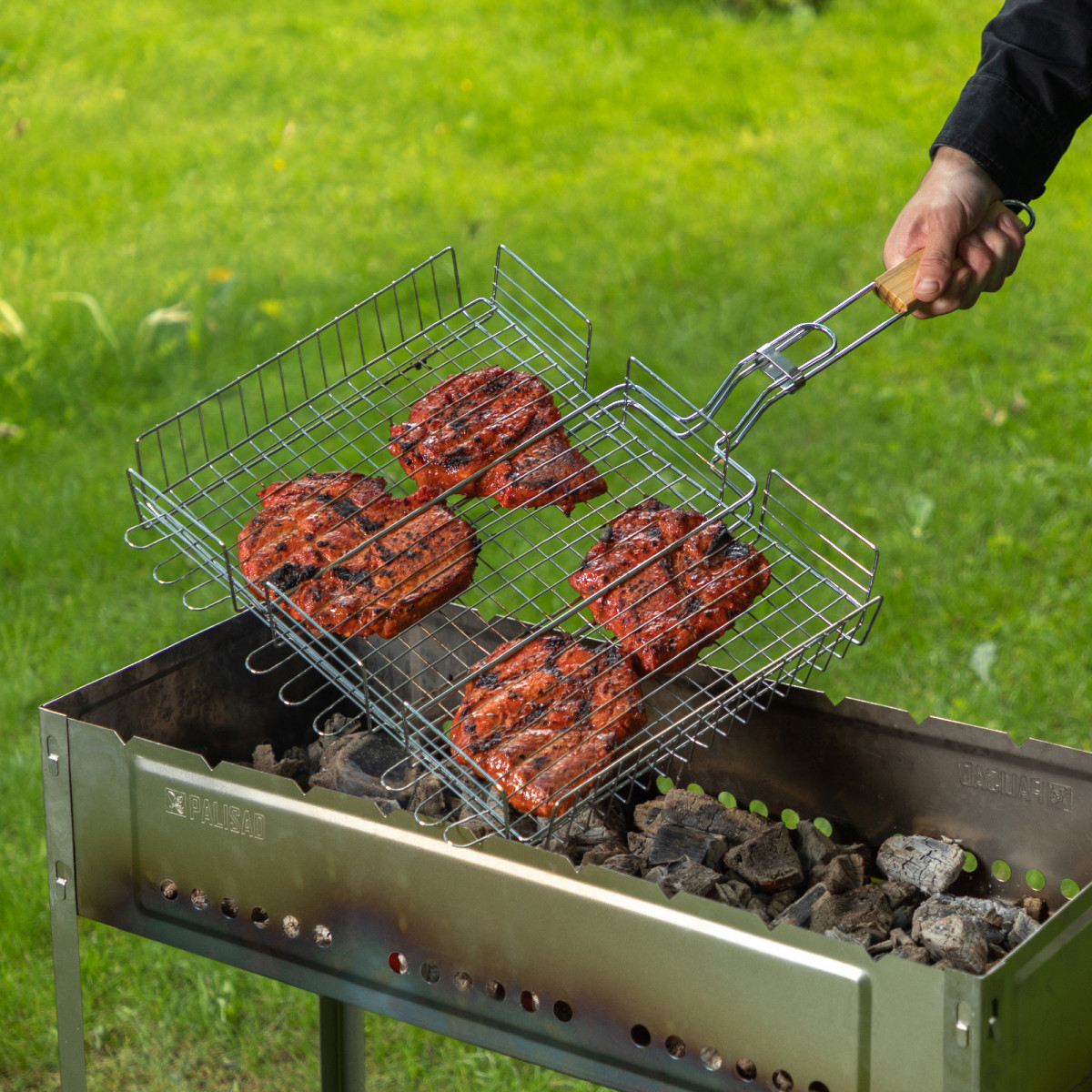 Увеличенные опорные стержни обеспечивают надежную фиксацию решетки на мангале.