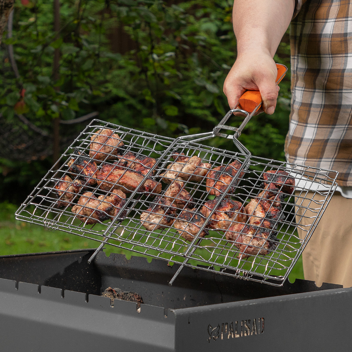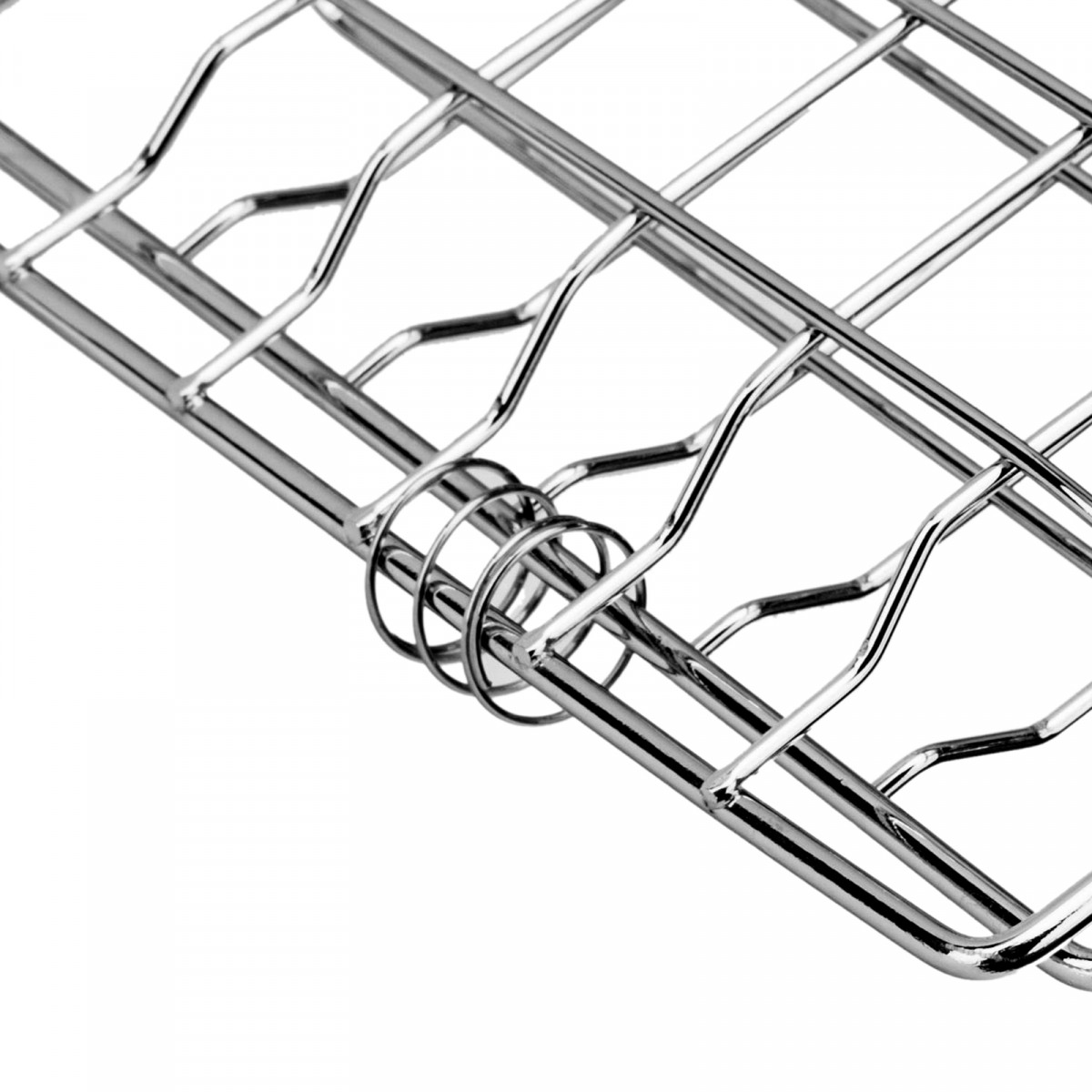• Решетка оборудована увеличенными опорными стержнями, за счет чего прочно фиксируется на мангале, а при готовке ее площадь используется полностью.
