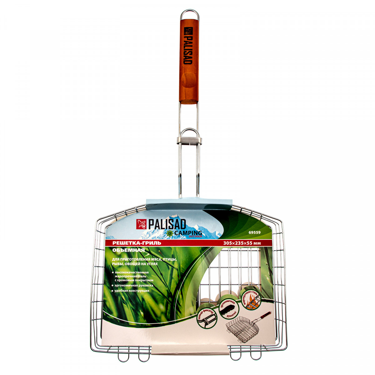 Решетка гриль 305 х 235 х 55 мм, объемная, хромированная Camping Palisad