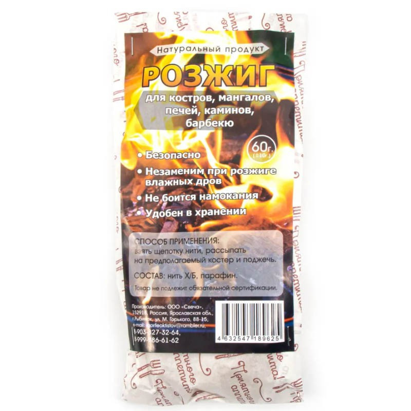 Розжиг сухой, нить парафиновая СЛЕДОПЫТ 60гр