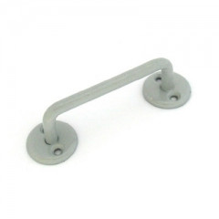 Ручка-скоба для деревянных окон и дверей. Материал - сталь, полимерное покрытие. Расстояние между креплениями - 90 мм, диаметр накладок - 34 мм. Длина ручки - 80 мм, высота - 30 мм. Крепеж в комплект не входит.