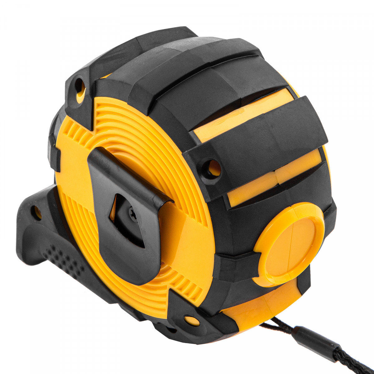Двухкомпонентный корпус из ABS-пластика и термопластичной резины обеспечивает высокую прочность рулетки.