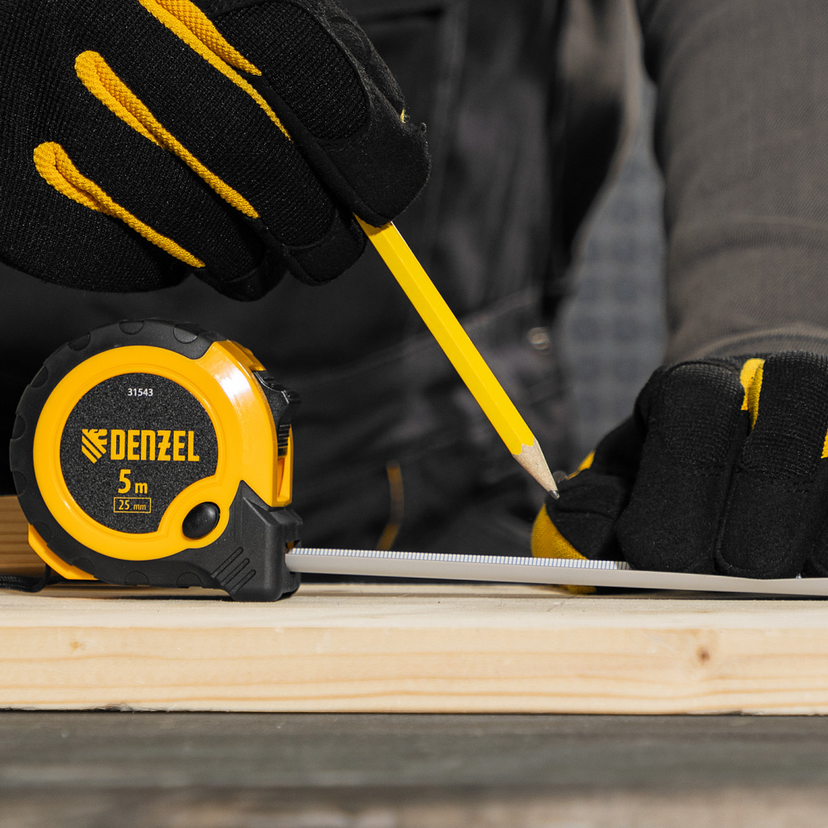 Рулетка 5м х 25мм, двухкомп. корпус, кнопка-пауза Denzel