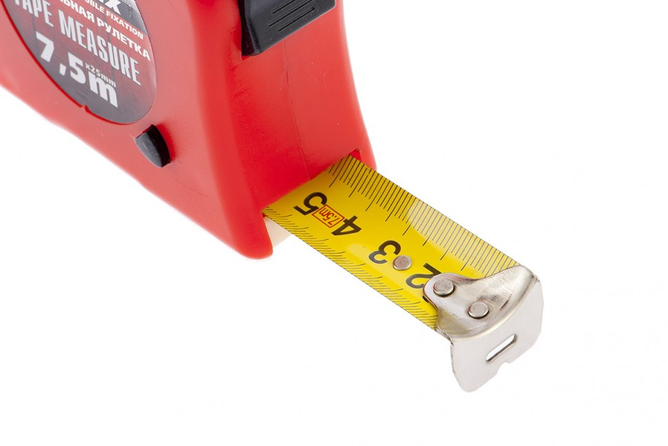 Рулетка Double fixation,7,5 м х 25 мм,обрезиненный корпус,двойная плавная фиксация Matrix
