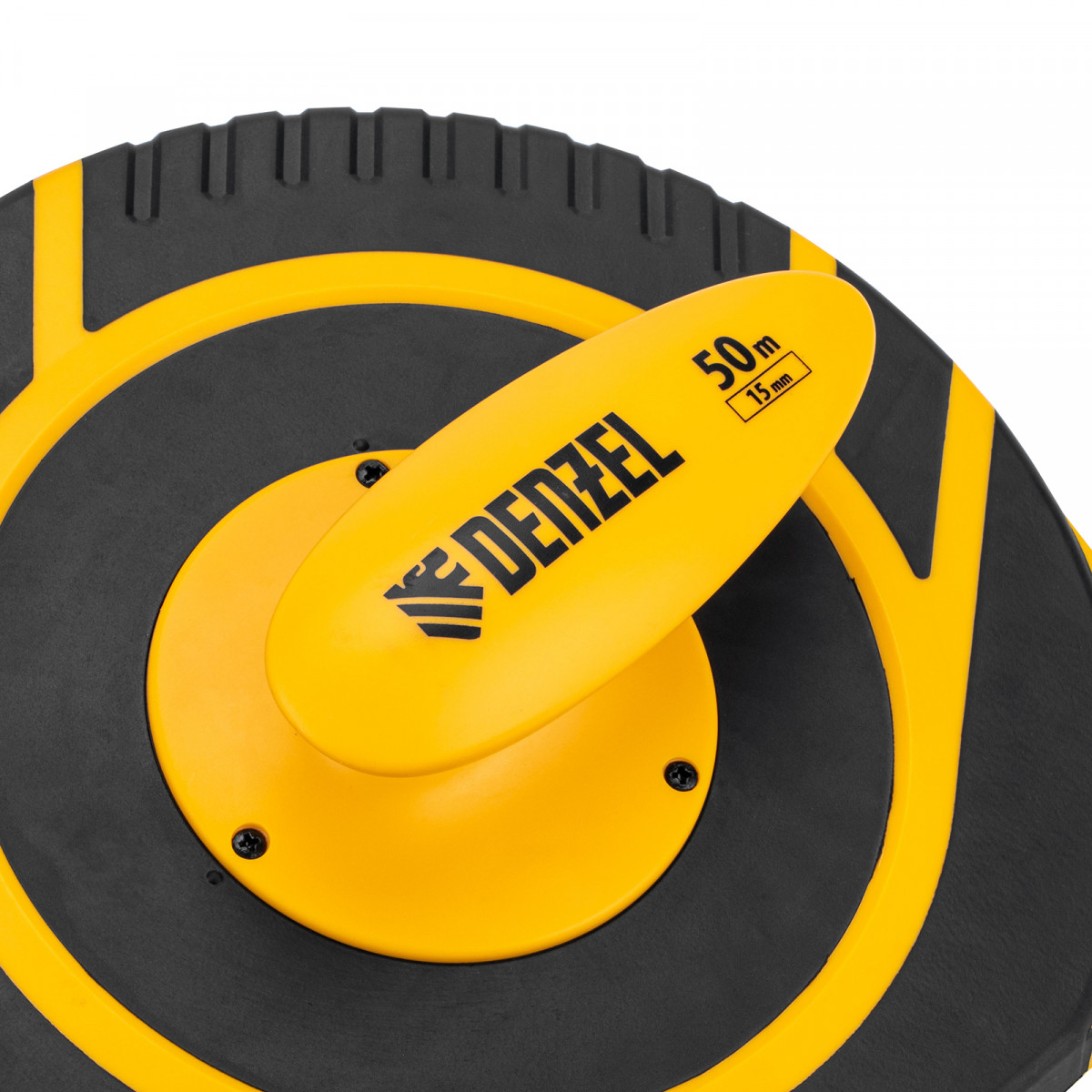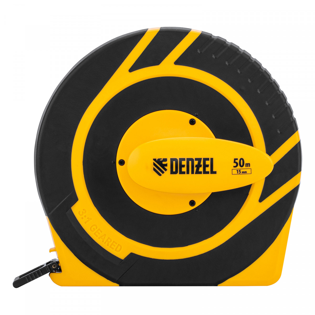 Рулетка геодезическая 50 м х 15 мм, закрытый корпус, фиберглассовая лента Denzel