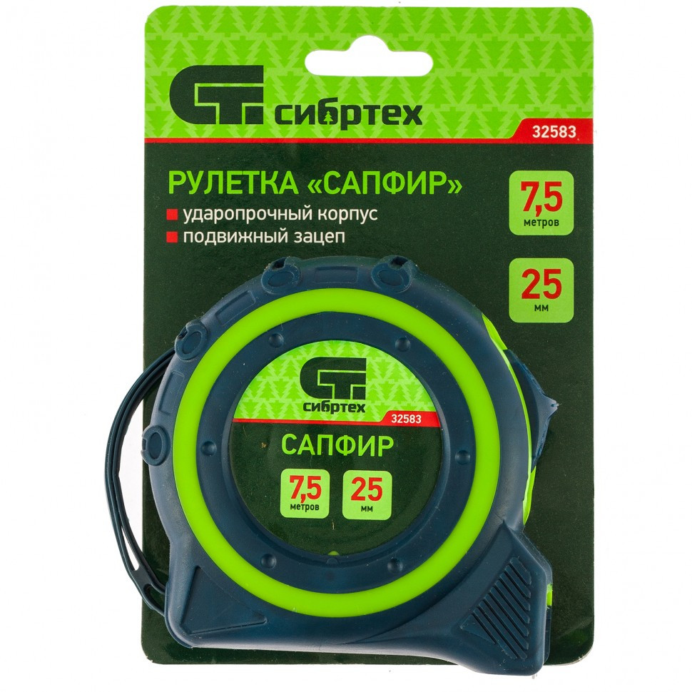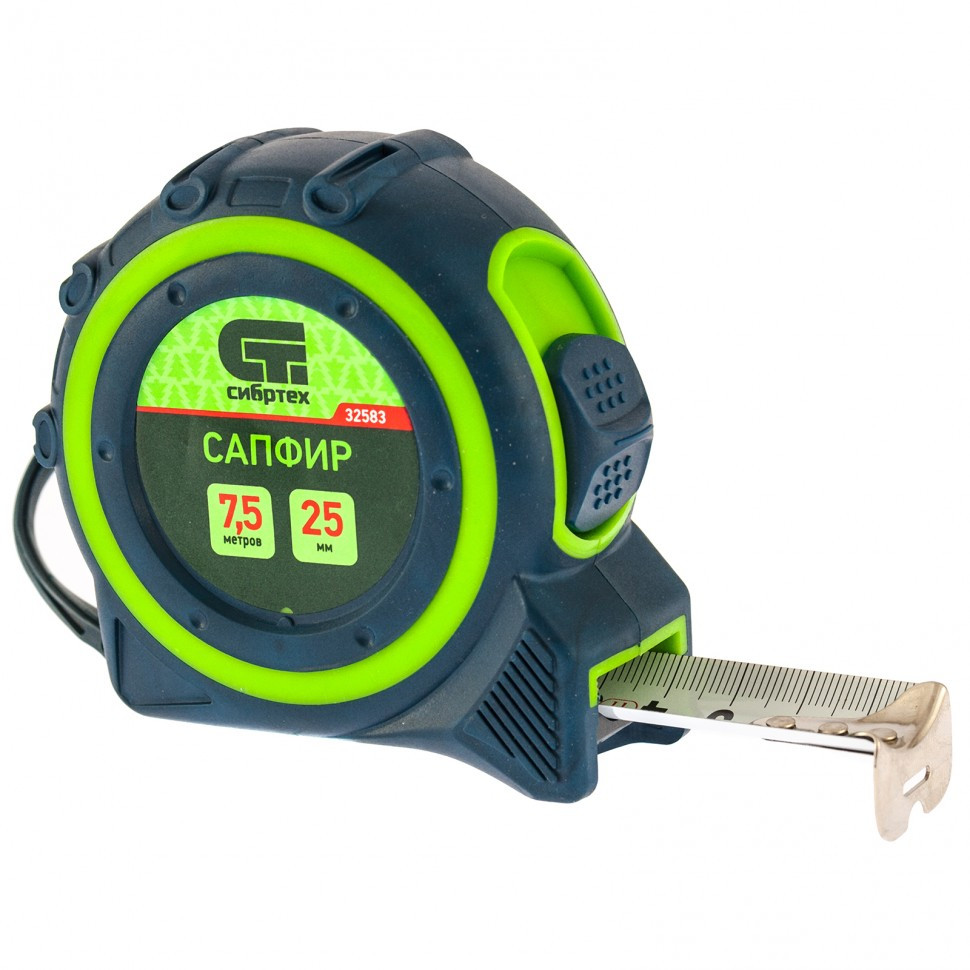 Рулетка Сапфир,двухкомпонентный корпус,7,5 м х 25 мм Сибртех