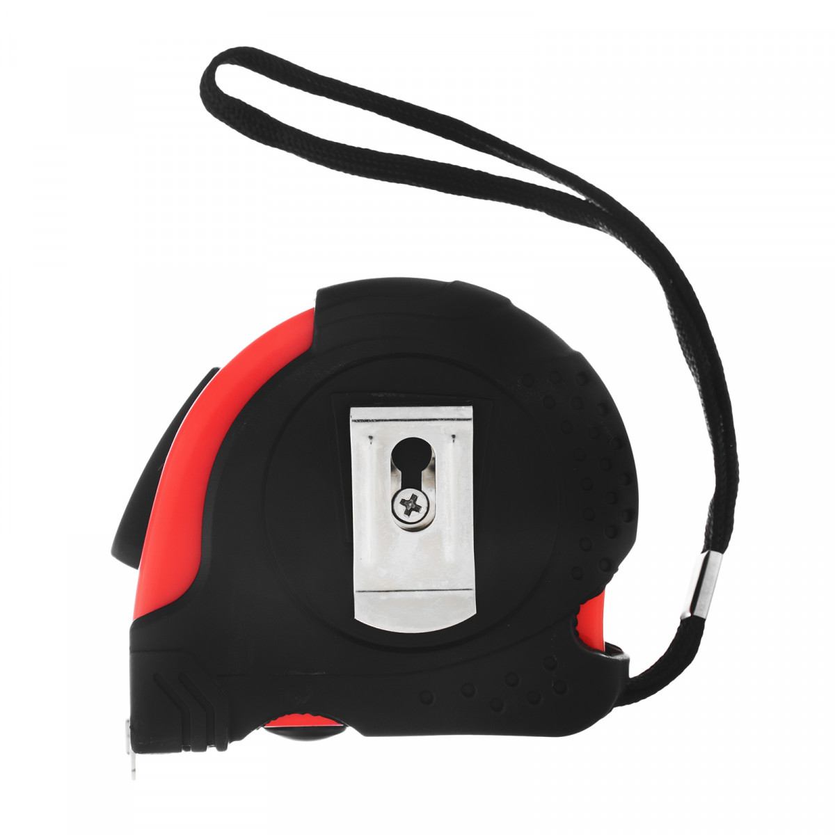• Дополнительные возможности — шнурок для крепления на запястье уменьшает риск падения рулетки, на боковой поверхности имеется зажим для фиксации рулетки на поясном ремне.