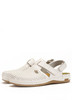 Женские тапочки-сабо (белый) с нескользящей подошвой и платформой станут любимой парой женщин, предпочитающих комфорт ног при пешем передвижении по городу. Жертвенность красоты - стереотип, за который многим женщинам приходиться расплачиваться здоровьем ног. Данная модель не претендует на высокую моду, однако она готова подарить своей обладательнице комфортные прогулки и рабочие дни. Верх из натуральной мягкой кожи не будет натирать ноги, при этом позволяя кожи дышать - перфорация превосходно пропускает воздух. Задний ремешок надежно фиксирует ногу в обуви - сабо не будут даже пытаться слететь с ноги. Боковой ремешок позволяет регулировать ширину модели - довольными останутся даже обладательницы ""нестандартных"" ног.
