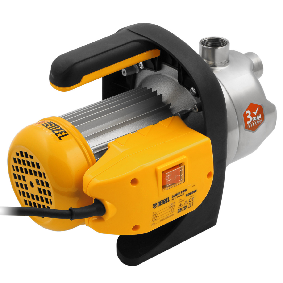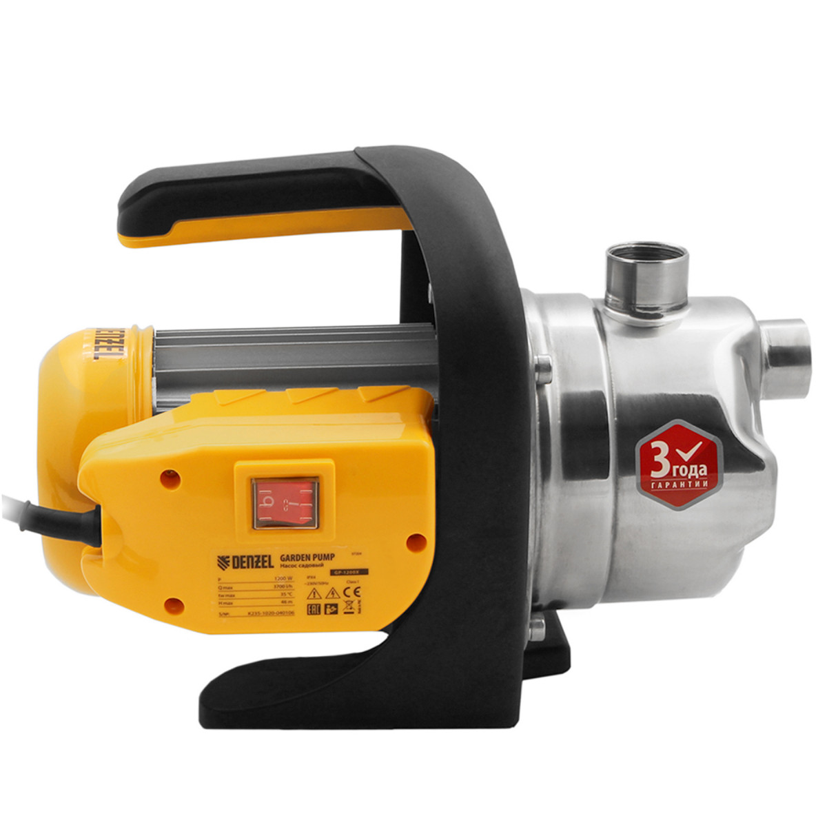 Садовый поверхностный насос GP1200Х, 1200 Вт, 3700 л/ч, подъем 46 м, нержавейка Denzel