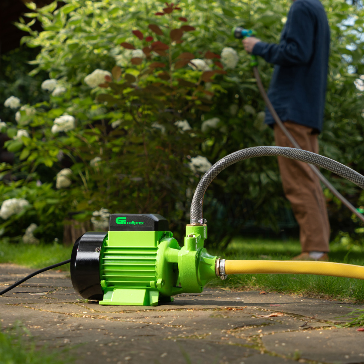 - Вес 7,55 кг — насос удобно перемещать по участку.