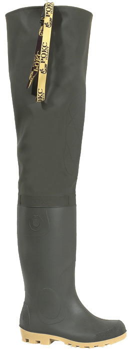 При помощи сварки токами высокой частоты, надставка герметично приварена к сапогам из ПВХ и имеет наколенник, для защиты колена. Протектор подошвы с глубоким открытым рисунком, что обеспечивает комфортность при ходьбе по любой поверхности. Удлиненное широкое голенище рыбацких сапог изготовлено из водонепроницаемой ткани - Винитол и имеет ремешок с застежкой "фастекс" для пристегивания к поясному ремню, что обеспечивает надежную фиксацию рыбацких сапог и комфорт при движении на рыбалке, охоте и активном отдыхе. Сапоги: с широким и высоким голенищем, верхняя чась надставки сапога крепится к ремню брюк регулируемой тесьмой.
