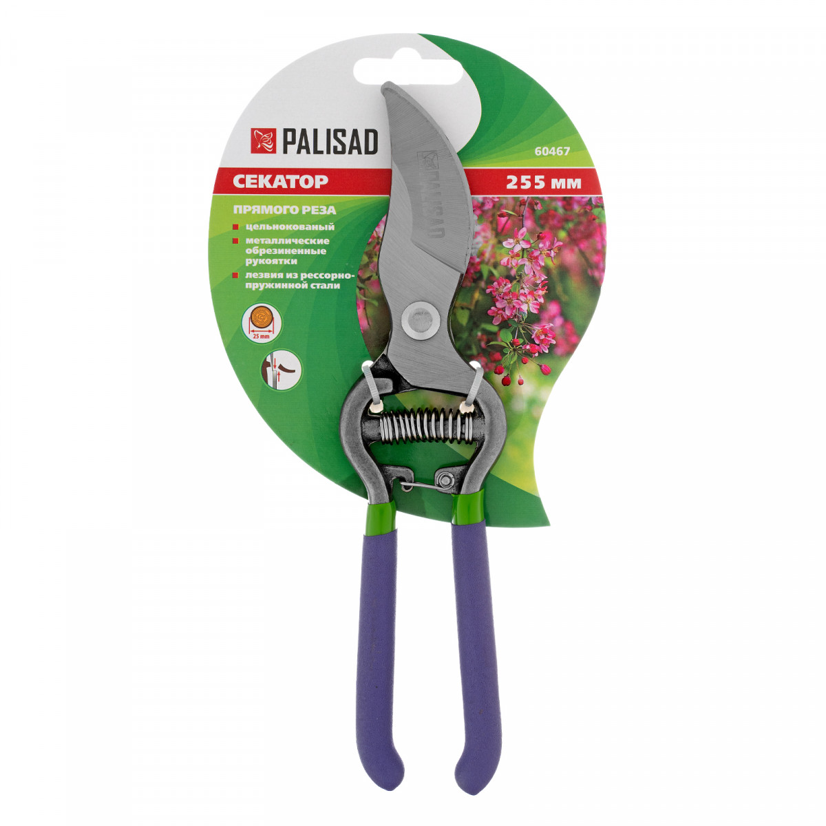 Секатор прямого реза, 255 мм, цельнокованый, металлические обрезиненные рукоятки, Palisad