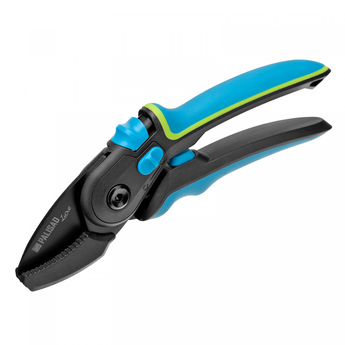 - Опорная наковальня с зубчатой поверхностью облегчает захват и фиксацию веток, в том числе гладких.