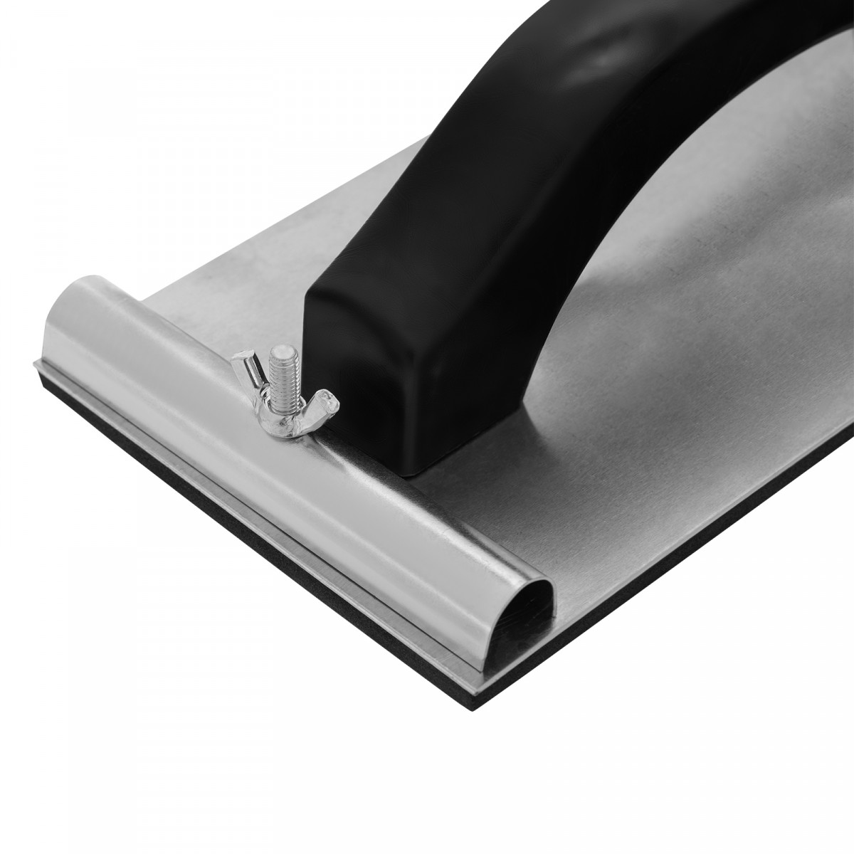 Металлический сеткодержатель Matrix 75856 с подошвой 230 х 105 мм, с зажимами, используется для ручного шлифования деревянных, шпатлеванных, металлических, пластмассовых и прочих твердых поверхностей. Сеткодержатель фиксирует абразивную стеклосетку или шлифлист и позволяет удалять старые отделочные покрытия, подготавливать поверхность под покраску, а также выполнять чистовую обработку.