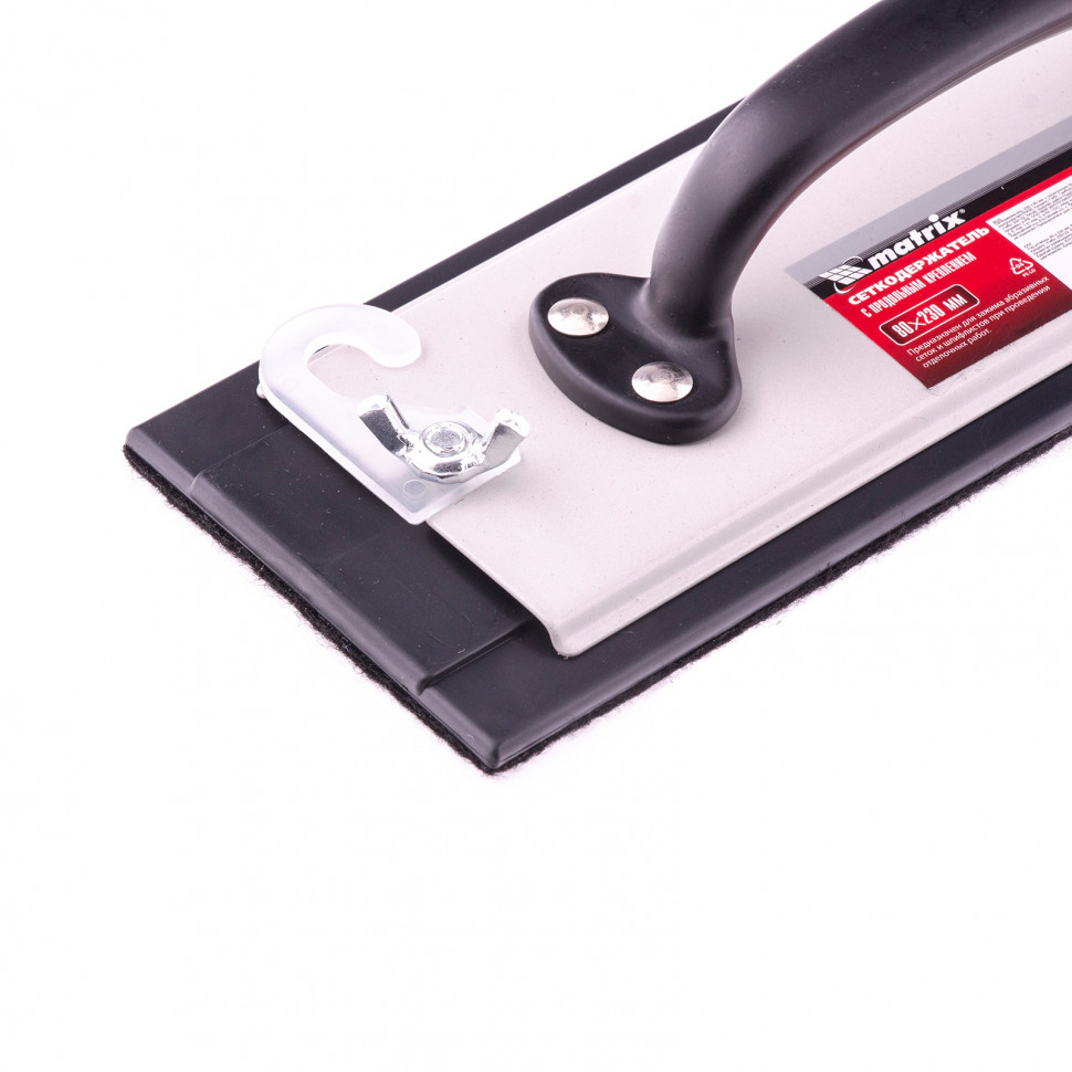 Сеткодержатель Matrix 75860 с подошвой размером 230 х 80 мм, с продольным креплением, используется для подготовки твердых поверхностей к малярно-отделочным и кузовным работам. Надежно фиксирует сетки или шлифлисты любой зернистости, позволяя проводить как грубую, так и тонкую шлифовку древесины, металла, шпатлевки или пластика.