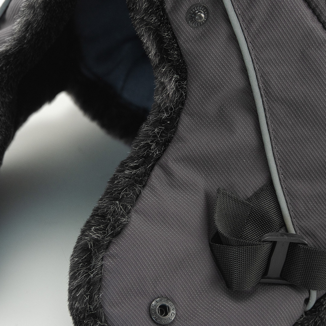 Водоотталкивающая ткань "Мембрана Breathable 3K" обеспечивает защиту от влаги и сохраняет тепло в шапке.