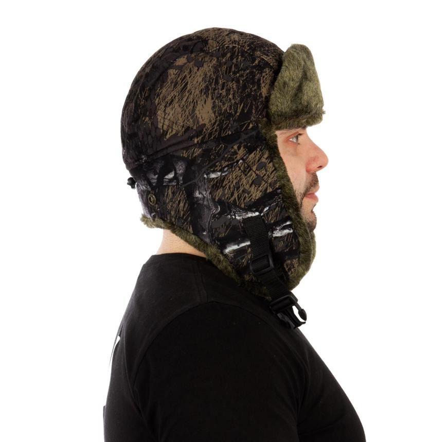 Шапка-ушанка «Умка» для охоты, рыбалки. Изготовлена из мембранной ткани "алова", с подкладкой из флиса. Утеплитель "термотекс". Застегивается на фастекс. На козырьке, внутренней части ушей и затылочной части утеплена искусственным мехом. Козырек отстегивается – зафиксирован на 2 кнопки. Объём шапки регулируется по обхвату головы. Уши шапки можно убрать назад и зафиксировать на 2 кнопки.