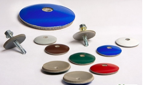 Шайба из стали применяется для работы с большой площадью покрытия, а также для установки поликарбоната в районах с сильными ветрами. Кроме этого, данный крепежный материал устанавливается на металлическом профиле, где он смотрится красиво и органично. Размер термошайбы для поликарбоната составляет 3,3 см в диаметре при толщине 0,8 мм. Внутреннее отверстие для самореза или болта равняется 6 мм.