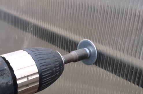 Размер шайбы и прочность металла, из которого она изготовлена, дает гарантию надежности крепления листов пластика. Такой крепеж, в сочетании с алюминиевыми профилями, сможет удержать кровельное и фасадное покрытие из поликарбоната даже при очень сильном ветре. Для надежности рекомендуется проводить прикручивание каждые 25-30 см.