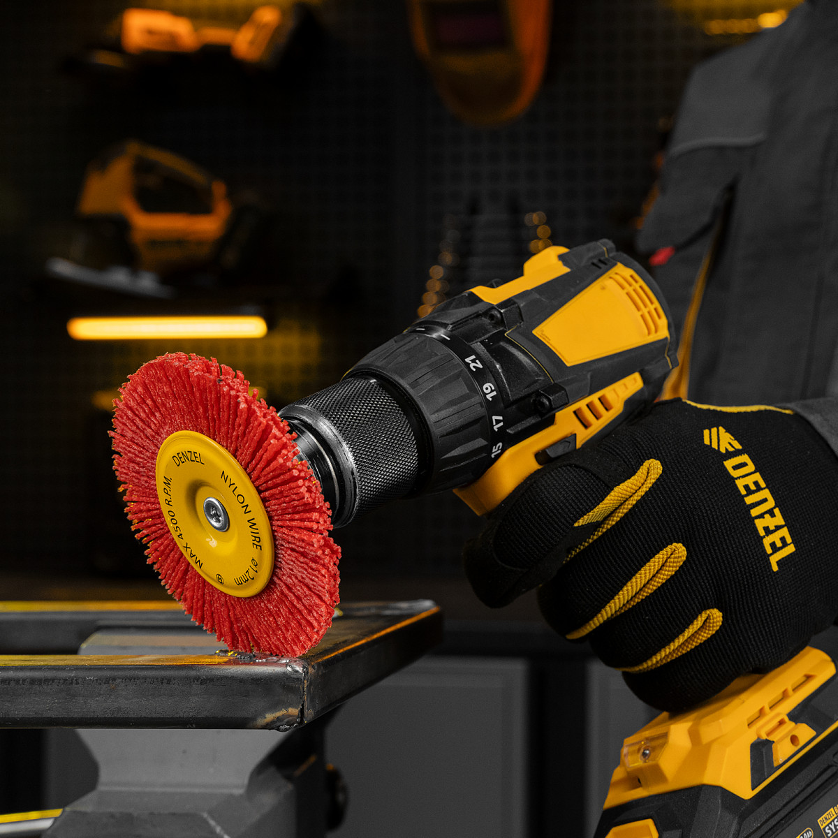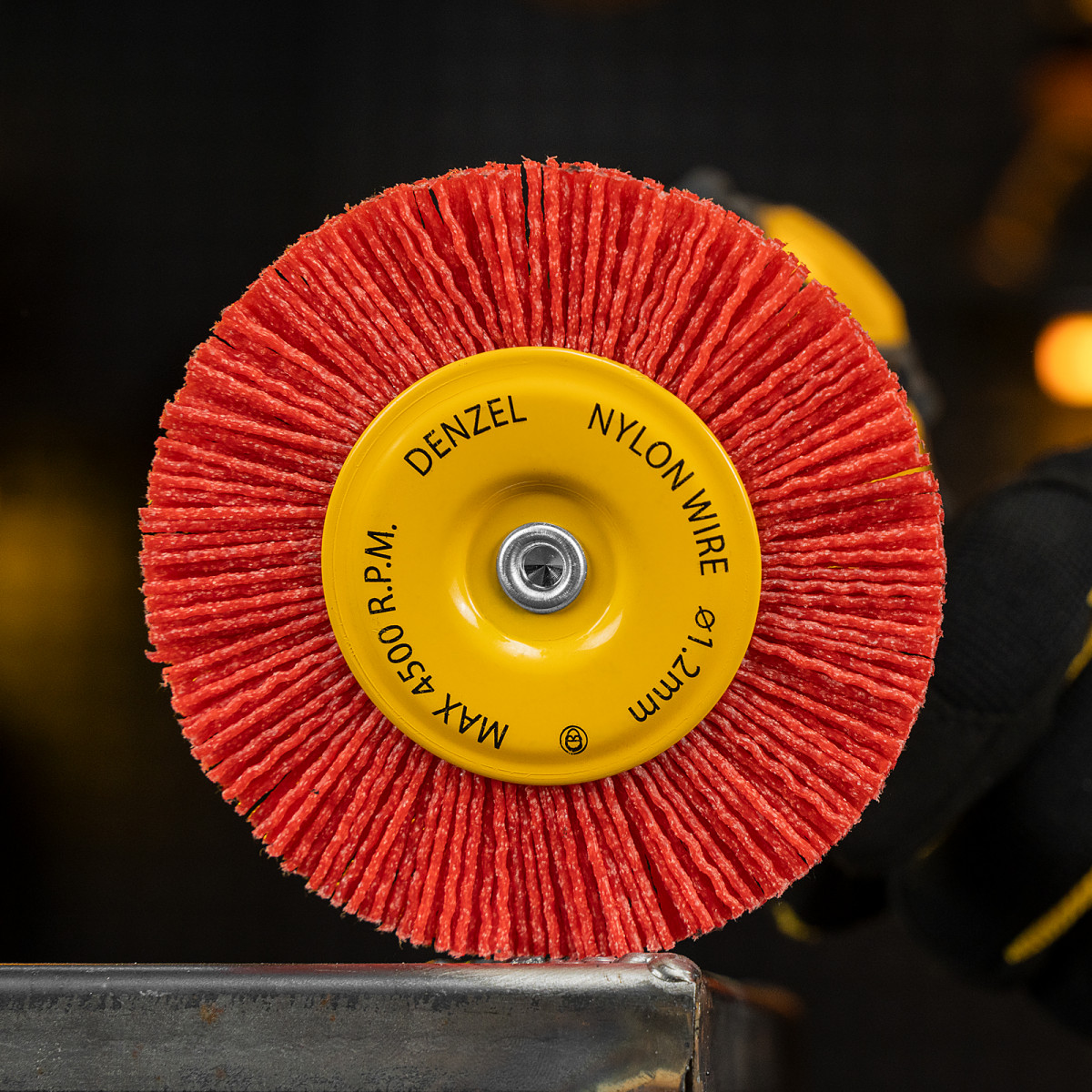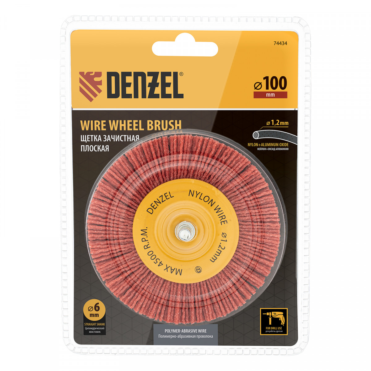 Щетка для дрели, 100 мм, Плоская, со шпилькой, нейлоновая щетина Denzel