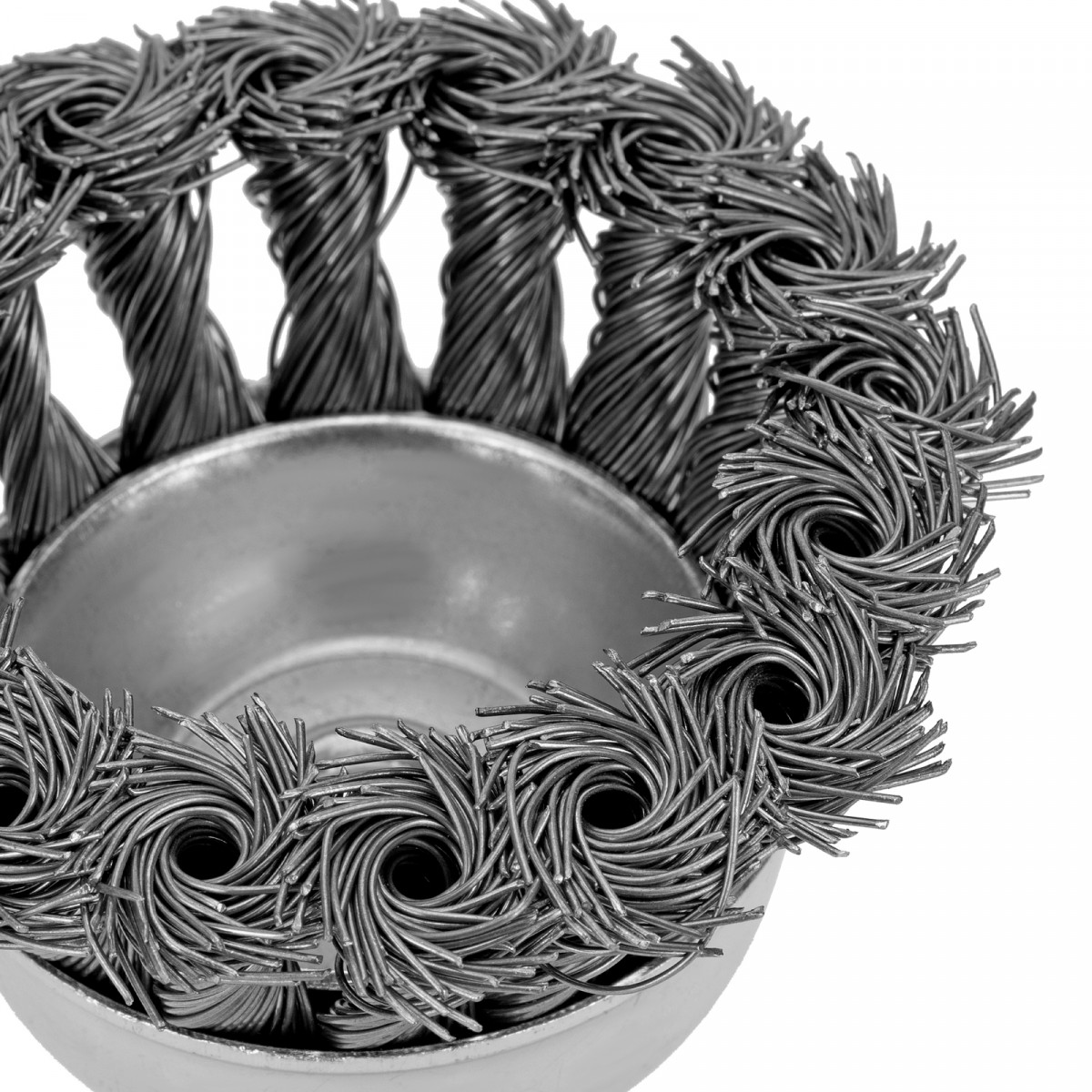 Щетка для дрели, 75 мм, "чашка" со шпилькой, крученая металлическая проволока Matrix