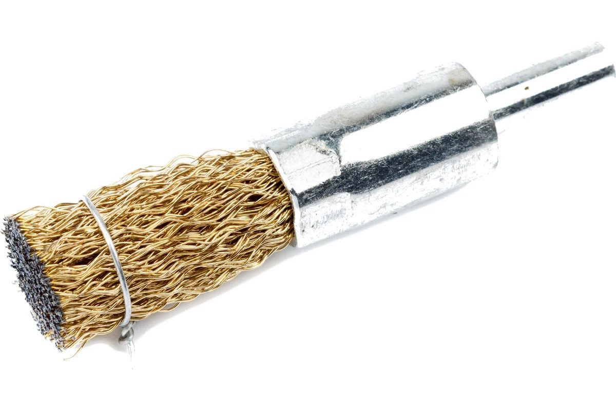Волнистая форма проволоки обеспечивает более эффективное удаление загрязнений при использовании щетки для дрели.