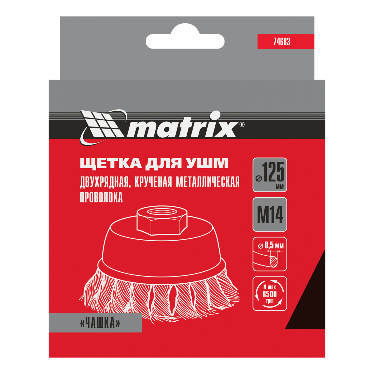 Щетка для УШМ, 125 мм, М14, "чашка", двухрядная, крученая проволока 0.5 мм Matrix
