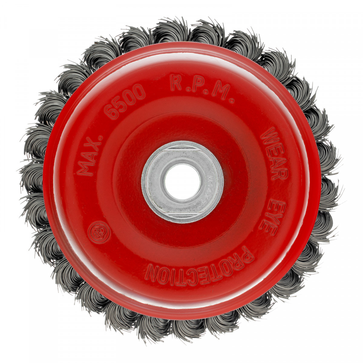 Щетка Matrix «Чашка» 74627 диаметром 125 мм, с присоединительной резьбой М14, с щетиной из крученой проволоки диаметром 0,5 мм, устанавливается на УШМ, поддерживающую работу со скоростью 6500 об/мин. Изделие предназначено для грубой (черновой) обработки поверхностей и подходит для удаления загрязнений, снятия толстого слоя ржавчины, ЛКМ, зачистки сварных швов.