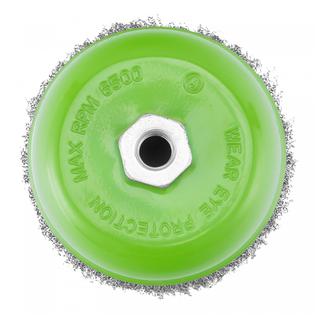 • Быстрая установка и замена насадки — щетка крепится на вал УШМ при помощи гайки М14.