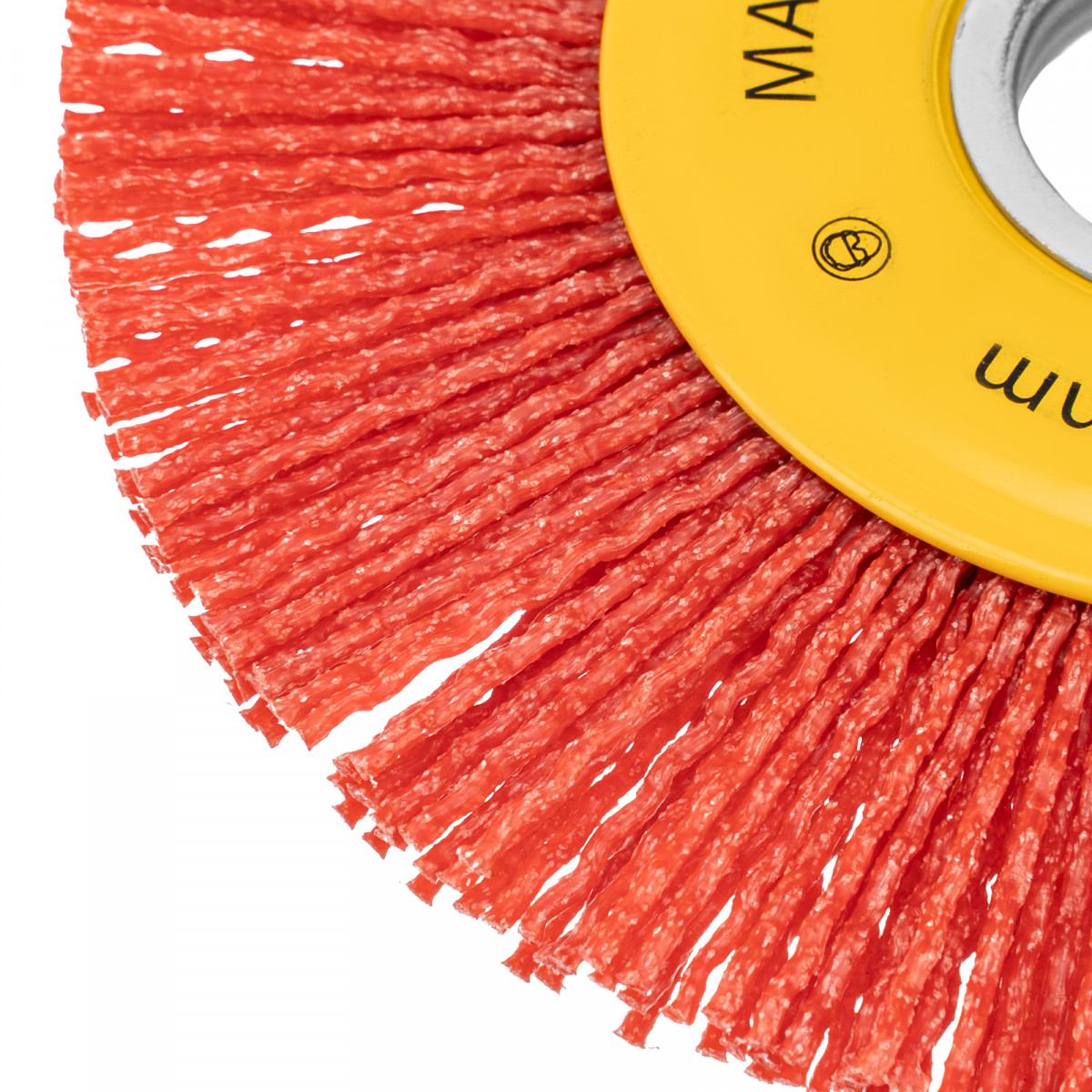 Щетка для УШМ, 125 мм, Плоская, нейлоновая щетина, посадка 22,2 мм Denzel