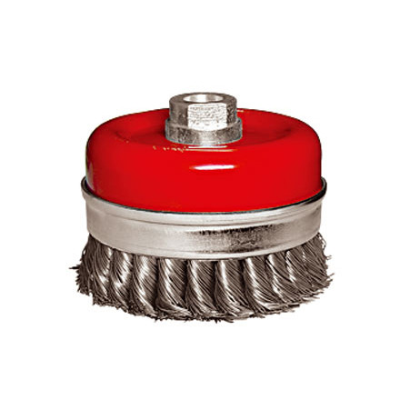 Щетка изготовлена из крученой стальной проволоки. Применяется для грубой очистки металлических поверхностей от ржавчины и зачистки сварных швов. Тип посадки – М14.