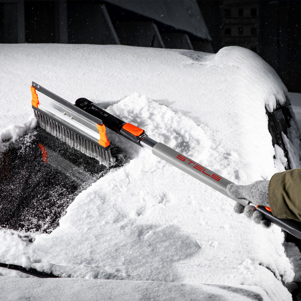- Раздвижная рукоятка позволяет легко очистить капот или крышу машины.
