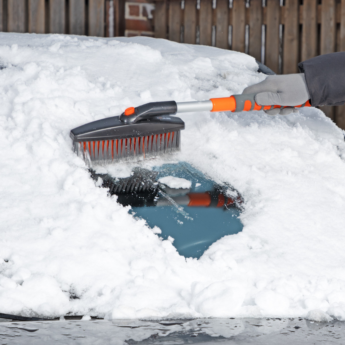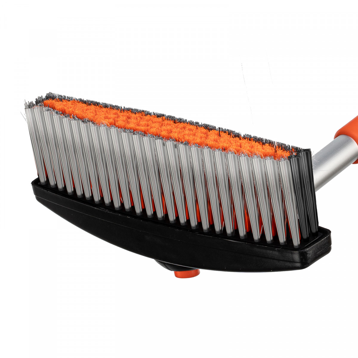 - Щетка-скребок имеет плотную щетину, распушенную на концах, поэтому эффективно убирает слой снега, не царапая поверхность кузова.