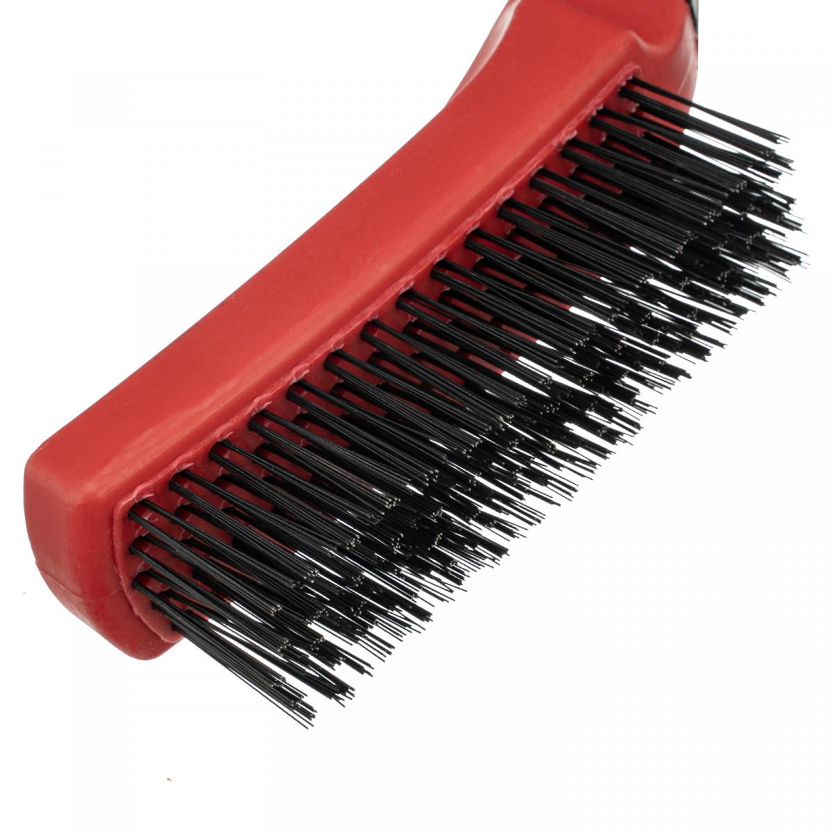 • Крепкая фиксация пучков проволоки в основании — щетина не разлетается в процессе зачистки.