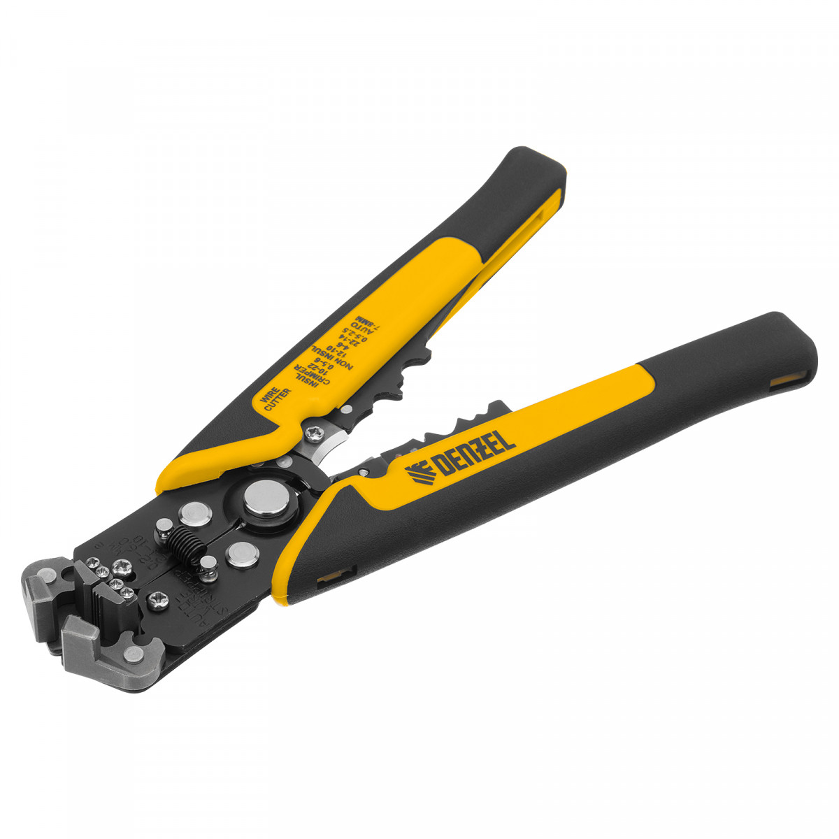 Щипцы Denzel 17742 — инструмент для зачистки электропроводов сечением 0,2-6 мм2 (22-10 AWG), способный дополнительно выполнять функцию обрезания проводов. Используется при проведении электромонтажных работ, подходит для профессионального применения.