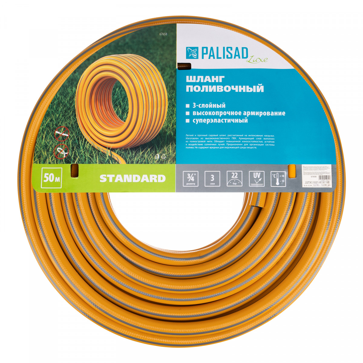 Шланг поливочный армированный, 3-х слойный, "Standard" 3/4", 50 м, Luxe Palisad